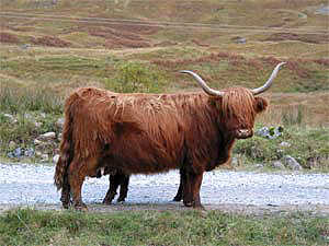 Die niedliche und zottelige Schottische Kuh |