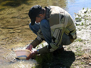 Am versuch Gold zu waschen, aber ohne Erfolg, |