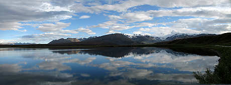 Die sich Spiegelnde Alaska Range, in einem kleinen See am Richardson Highway "Alaska" |