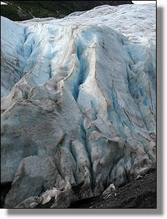 mit Dreck überzogene Vorderteil des Root Gletscher, beim