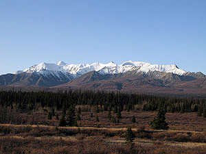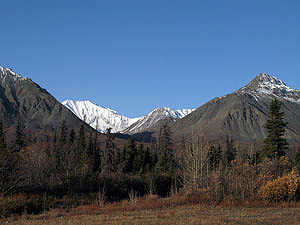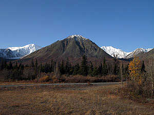 Blick vom Alaska Highway, in Richtung St. Elias Mountains |