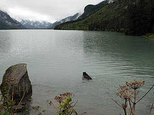 Bärenbad im Chilkoot Lake, |