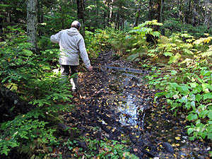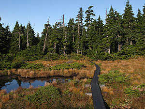Holzplankenweg über den Sumpf, vom