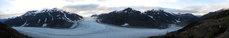 | Panorama auf die zwei Gletscherzungen des Salmon Gletscher "Kanada / Alaska" |
