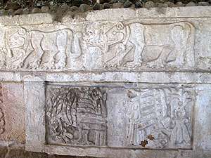 Flachrelief mit vollplastischen Steinplastiken