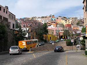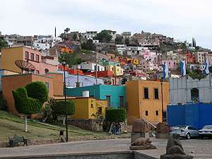 | Blick von unserem Fussmarsch, auf die kleine ehemalige Minenstadt La Luz 'San Luis Potosi' |