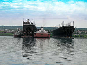 Vor dem Iron Ore Dock ankert das von