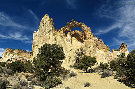 befahren konnten. Wir wollten nochmals die Cottonwood Road befahren und diesmal ging es auf dieser in umgekehrter Richtung, bis zum Kodachrome Basin. Auch diesmal gefiel uns diese Dirt-Road ausgezeichnet, sie führte uns durch eine spektakuläre Landschaft, mit einem kleinen Abstecher zur Grosvenor Arch, nach Cannonville. Auf dieser Strecke entstanden die folgenden 27 Bilder und bescherte uns beim Übernachtungsplatz, mit schönen Blick auf das Kodachrome Basin, eine schöne Abendstimmung. |