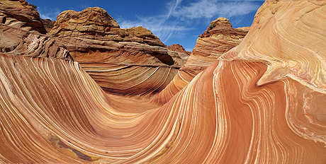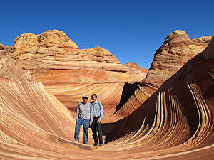 die 7 ins Glück. Was ist geschehen: Da wir gerne nochmals den Weg zur "The Wave" unter die Füsse genommen hätten, stellten wir uns auch diesmal der Permits Verteilung an. So bewarben sich an diesem Morgen 54 Personen für die 10 zu vergebenden begehrten Permits. Adrian fühlte den Zettel aus, gab in ab und bekam vom Ranger die No. 7 zugeteilt, die darauf tatsächlich gezogen wurde. Überglücklich machten wir uns am nächsten Tag auf diese sensationelle Wanderung. Da sich die Wolken schneller verzogen als es am frühen Morgen noch den Anschein machte, versüsste dies unseren Trip zusätzlich. So lasst Euch verführen durch die 83 Eindrücke dieser für uns unvergesslichen Wanderung. Auch der darauf folgende Abstecher zur Buckskin Gulch, enger Slot Canyon, fehlte natürlich nicht. 'Utah / Arizona' |