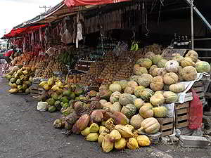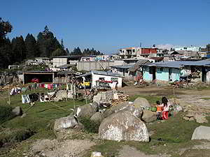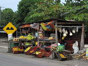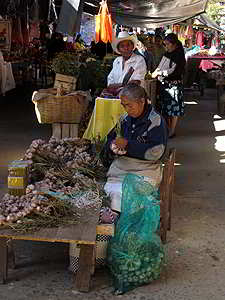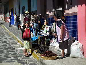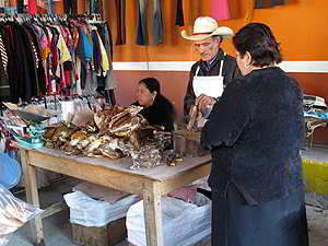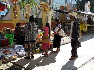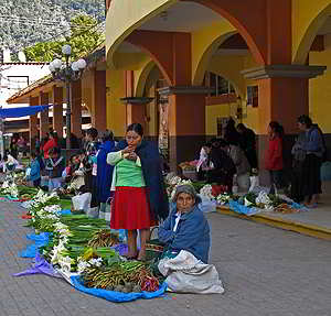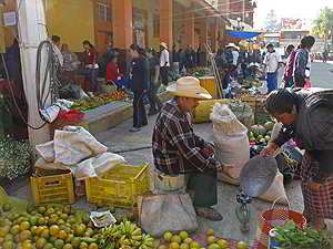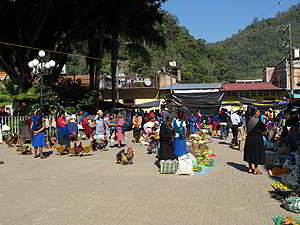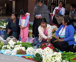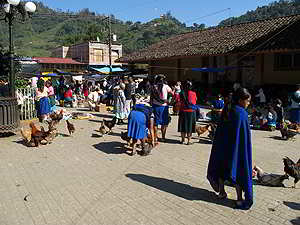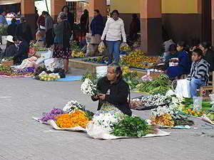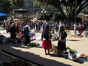 Die Indigena Bauern verkaufen hier ihr kleines Angebot an Gemüse, Früchte, Blumen oder Hühner. |