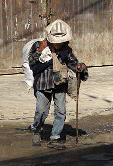 ...dieser Man buckelt sein Holzbündel zu Fuss nach Hause. |