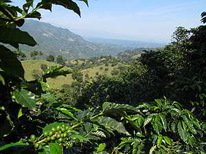 Blick von der #143 über Kaffeeplantaschen in die Ferne. 'Veracruz' |