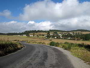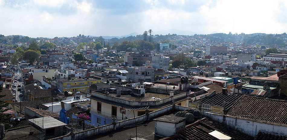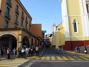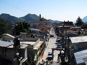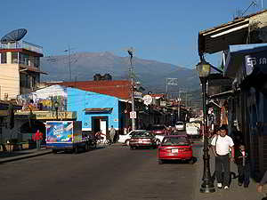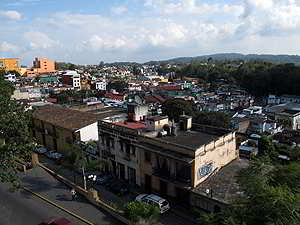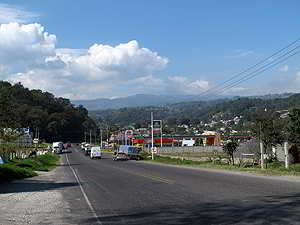 Blick vom Zocalo auf die Ausfahrtsstrasse von Xico in Richtung Coatepec. |