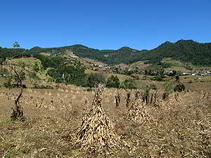 Blick über denn rauchigen Talkessel von Zongolica. |