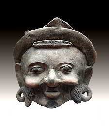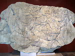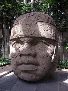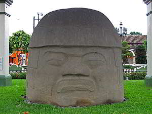 einem Dach dieser alte Olmeken Kolossalkopf der zwischen