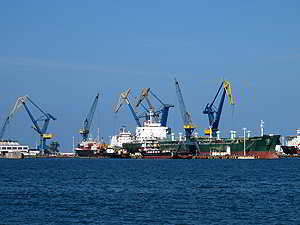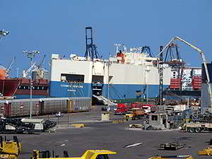 Hier belädt man gerade eine Ro-RoFähre. |