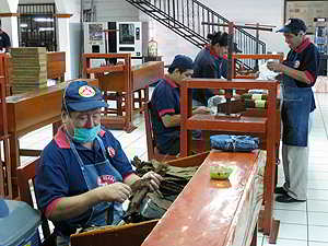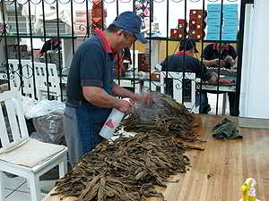 Zigarettenfabrik. Hier rollen sie die Zigaretten noch von Hand und