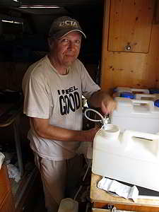 Nun gilt es ernst, ab jetzt müssen wir das Wasser Filtern und Adrian macht sich an die Arbeit. |