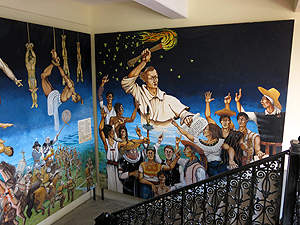 Im Munizipalgebäude ziert dieses Gemälde das Treppenhaus. |