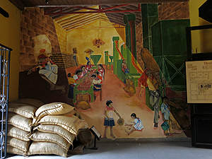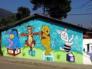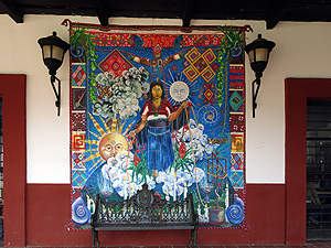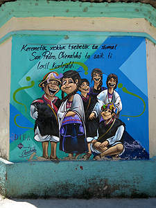 Gemälde an einer Hauswand von Chamula. |