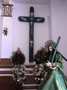... in welcher auch dieses bemalte Kreuz eine Kirchenwand ziert. |