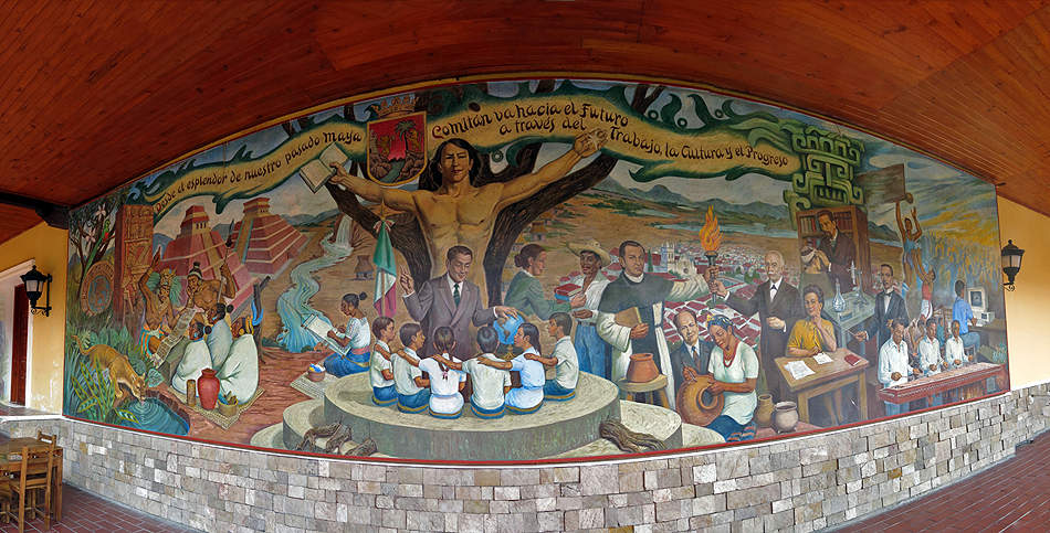 ... diesem imposanten Wandgemälde. |