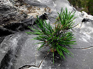 ... einige grüne Nadelzweige spriessen. |
