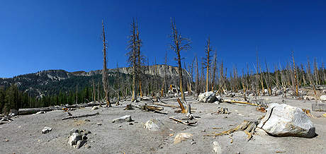 ... nur noch Baumskelette herum, doch ... |