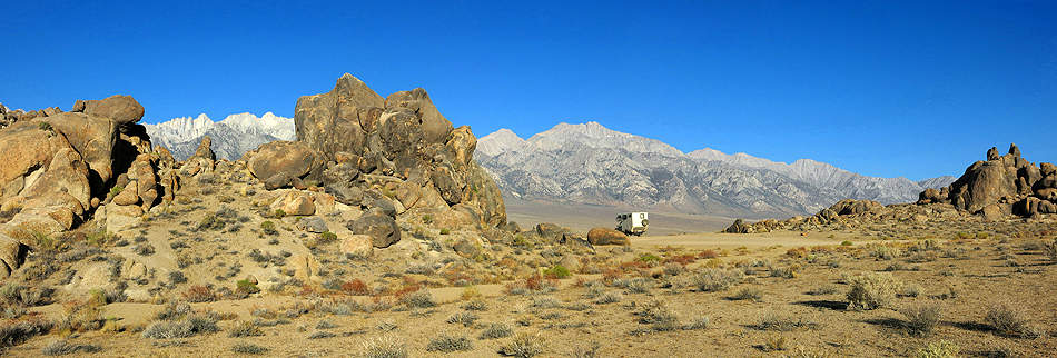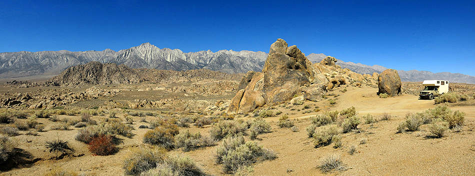 Vor der Bergkulisse des Mount Whitney starken wir uns und ...