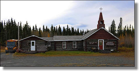 In Burwash Landing steht die Katholische Holzkirche