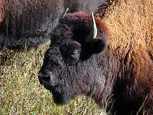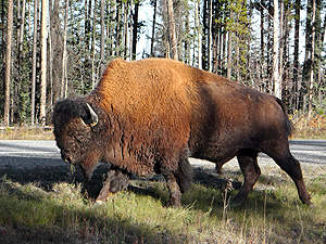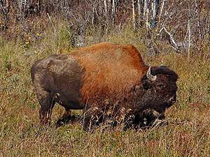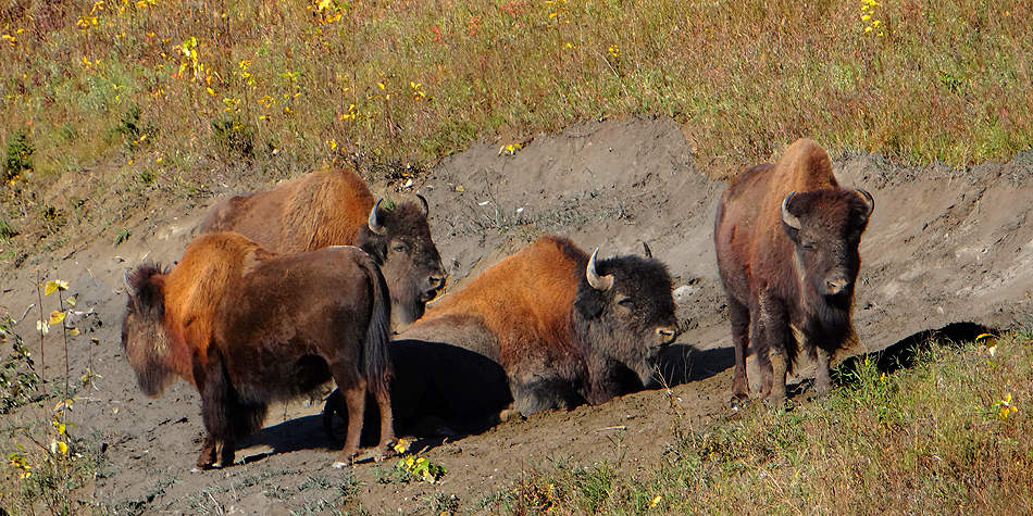 Wir erfreuen uns ab dem Anblick dieses Bison Bullen, denn auf der