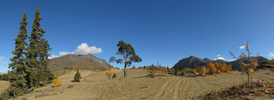 Mit dem Auto geht es danach zum Alaskahighway zurück und ... |