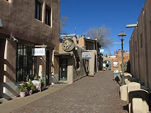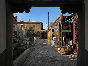 ... Spaziergängergasse im kleinen Zentrum von Taos. |