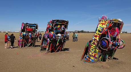 Die 10 bunten Fahrzeuge der Cadillac Ranch, nähe Amarillo. |