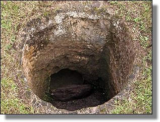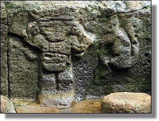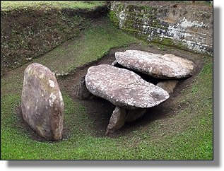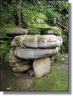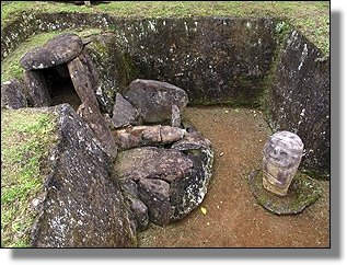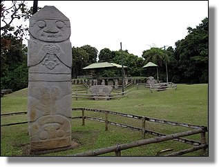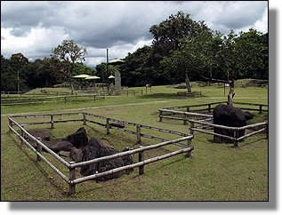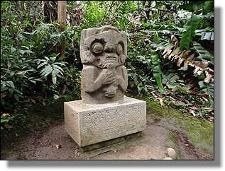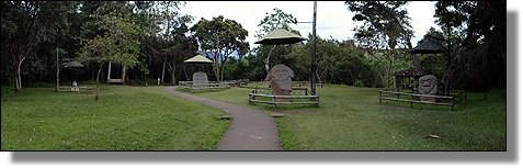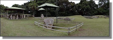 Der Höhepunkt des Rundganges macht wohl die Mesita B mit einigen Grabkammern und ganz speziellen Steinfiguren, die sicher ohne die Bambusumrandung noch besser zur Geltung kämen. |