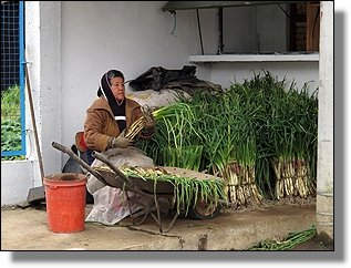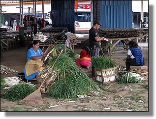 Hier wird das Zwiebelgewächs Cebolla Junca für den Verkauf gerüstet. |