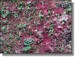 Viele der hiesigen Felswände sind mit diesem roten Moos bedeckt, ... |