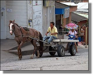 Solche Fuhrwerke haben wir bis jetzt fast in jeder Stadt von Kolumbien angetroffen. |