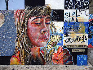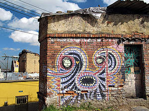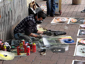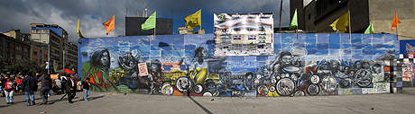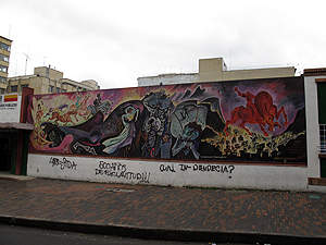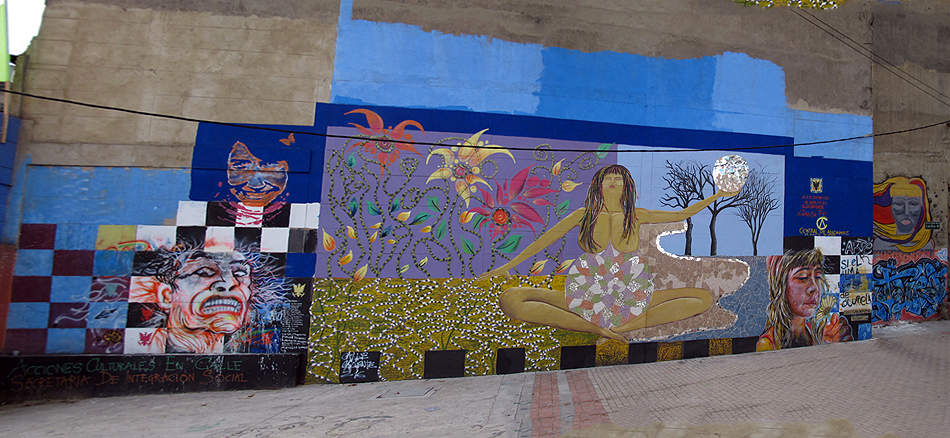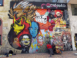 ... oder Spreikünstler, alles trifft man in den Strassenzügen von Bogota. |