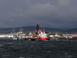 ... im angrenzenden Ozean wird Öl gefördert. |