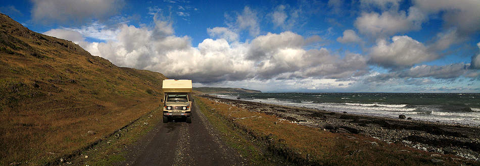wäre, unser Auto in Richtung der Ortschaft Cerro Sombrero. |