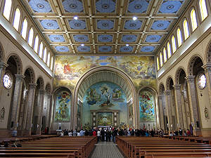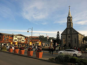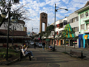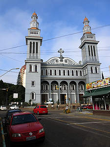 Rua Doutor Luiz Gualberto erblickt man die Kirche. |
