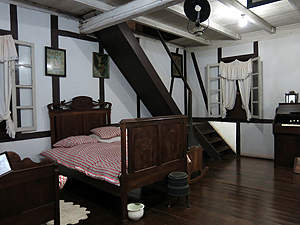 und entlang welcher es verschiedene schöne Fachwerkhäuser von