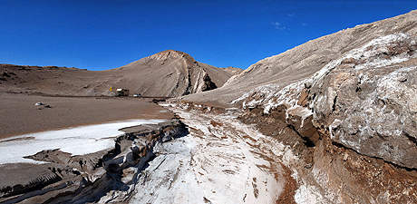 mit Salzkrusten überdeckte, Landschaft, des zur "Reserva Nacional los