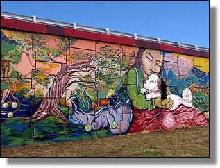 Diese Malerei ziert eine Autobahnbrücke und ein